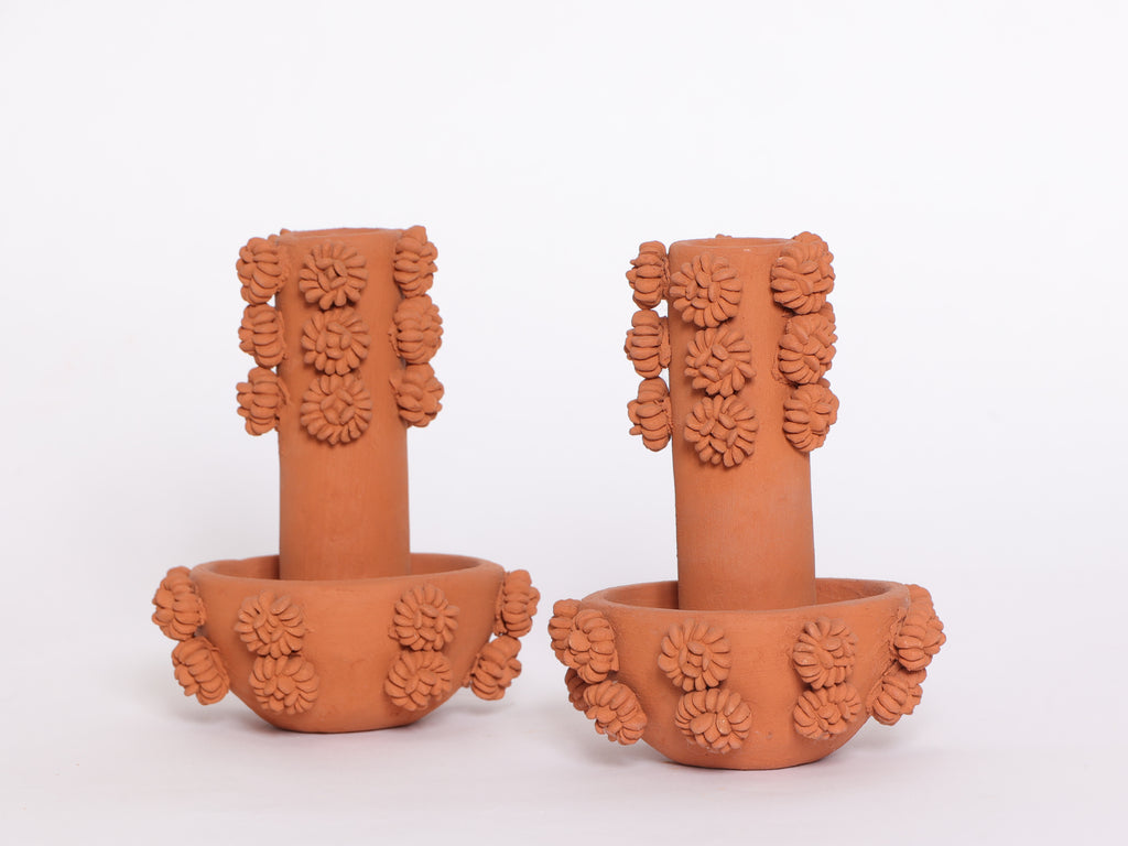 Découvrez l'éclat unique de nos magnifiques bougeoirs en argile rouge, alliant à la perfection l'élégance intemporelle et la beauté naturelle de l'argile. Chaque pièce, façonnée à la main par des artisans mexicains exceptionnels, incarne une ode à l'artisanat authentique et à l'expression... Lire plus